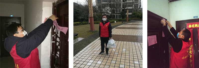 來自無錫創(chuàng)投集團(tuán)聯(lián)合黨支部的孫超、朱曉春兩名黨員志愿者正在為為社區(qū)的隔離戶提供服務(wù)(貼封條、送外賣、送快遞、清理生活垃圾等)。
