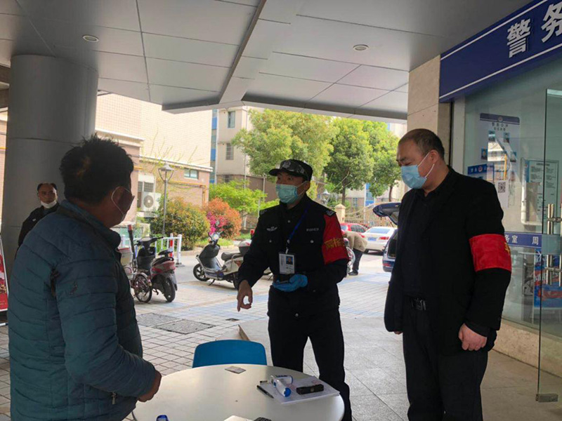 朱曉春、孫超駐守在周新苑四期的北門入口,協(xié)助保安檢查進(jìn)入小區(qū)人員的出入證,掃描錫康碼,測(cè)量體溫。