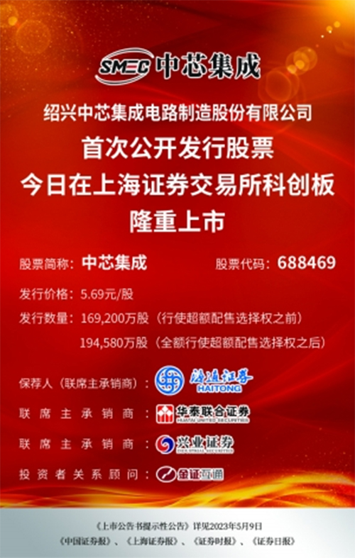 2023年5月10日,紹興中芯集成電路制造股份有限公司(公司簡(jiǎn)稱(chēng)“中芯集成”;股票代碼:688469)成功在上交所科創(chuàng)板上市發(fā)行,成為無(wú)錫創(chuàng)投集團(tuán)收獲的第44家上市企業(yè)、第13家科創(chuàng)板上市企業(yè)。