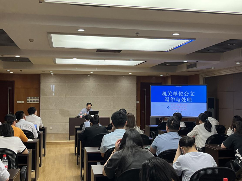 培訓(xùn)會上,武云超結(jié)合工作實(shí)際及公文綜合處理的經(jīng)驗(yàn),從“公文產(chǎn)生發(fā)展的歷史沿革、公文概述、常用公文介紹、公文處理、提高公文應(yīng)用能力”等方面,系統(tǒng)全面地講授了機(jī)關(guān)公文的寫作與處理。并結(jié)合案例,詳細(xì)講解了通知、報(bào)告、請示、批復(fù)等不同類型公文的寫作要點(diǎn)和注意事項(xiàng)。授課內(nèi)容既有格式規(guī)范,又有易犯錯誤示例,講解清晰,明了易懂。
