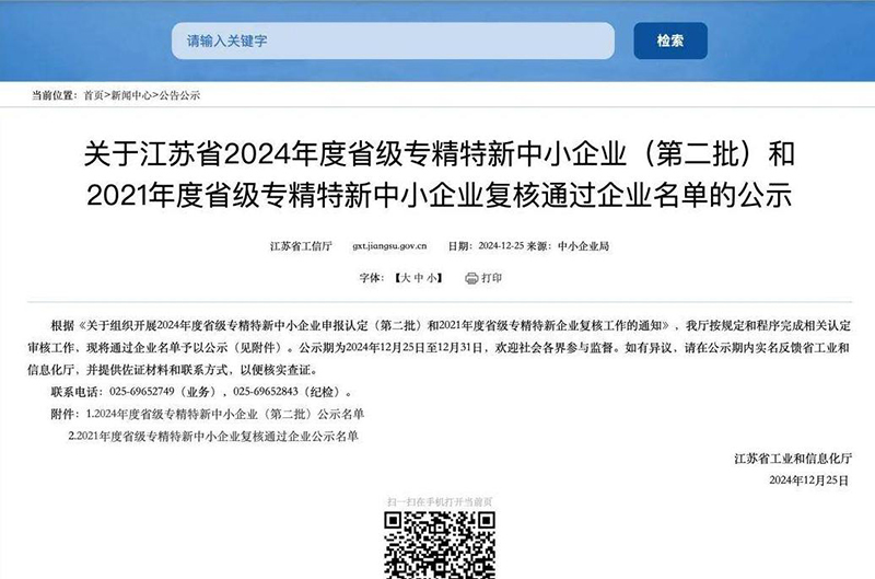 | 被投企業(yè)動(dòng)態(tài) | 上榜3家!2024年度省級(jí)專精特新中小企業(yè)名單公布 |